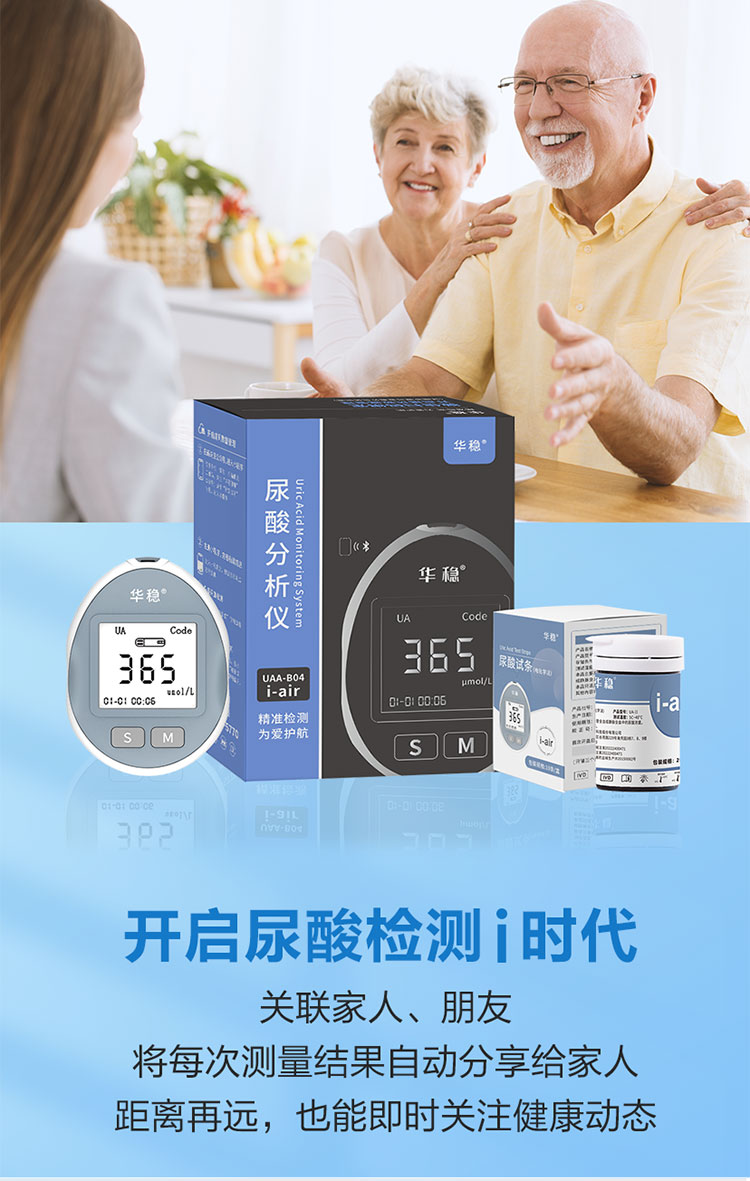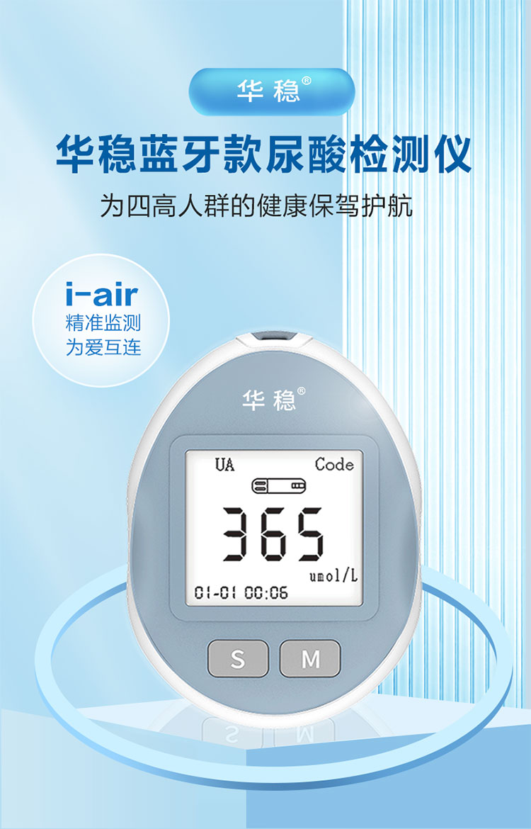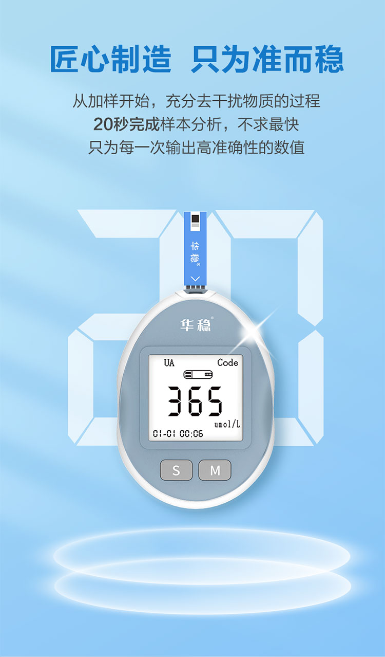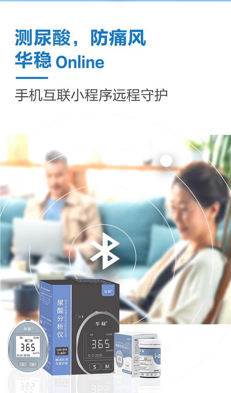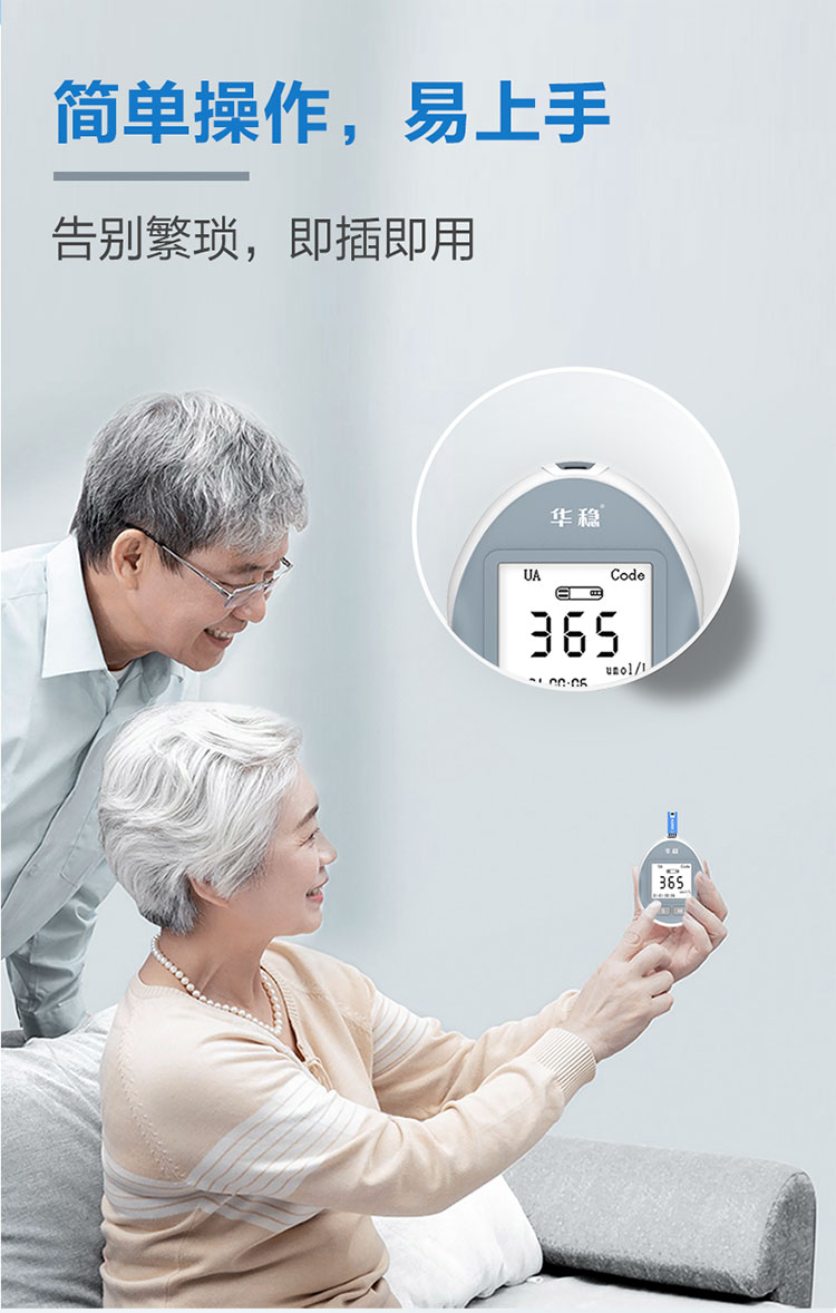 針對臨床使用特點采用便攜式設計,具有操作簡單、使用方便等特點,與公司研發的尿酸分析試條配合使用,可快速檢測血尿酸濃度。廣泛應用于診所、藥店、及家庭個人使用。